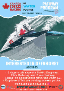 The Canada Ocean Racing Pathway Program is an extension of the Be Water Positive Sailing Team IMOCA campaign skippered by Canadian sailor Scott Shawyer. The program offers participants who are Canadian residents, aged between 18 – 25, an opportunity to engage with seasoned professionals, gain hands-on sailing experience, and explore potential career pathways in offshore racing. The program promises to be a transformative experience for aspiring members of the Canadian sailing community.