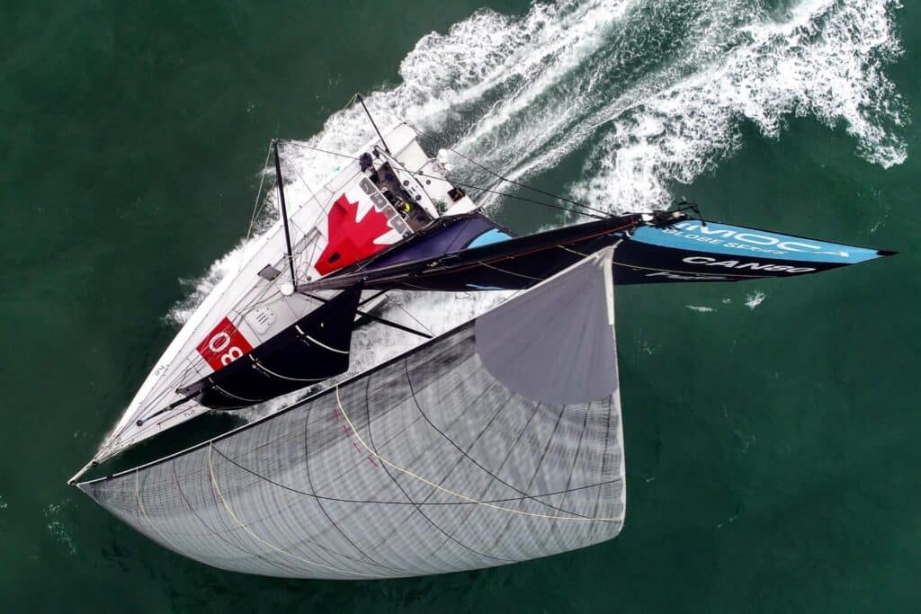 Our boat has several identities; Canada Ocean Racing, Be Water Positive (our team purpose), and is registered in maritime archives as EMIRA IV. EMIRA IV is an IMOCA 60 foiling racing yacht.